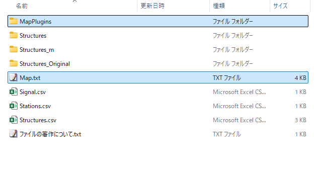 マップファイル(Map.txtなど)に対する位置関係が次の画像のようになるように、新しいフォルダ「MapPlugins」を作成します。